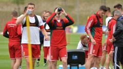 A hétfő délelőtti edzésen 22 játékos két csoportban vett részt, délután húszan gyakoroltak a csapat edzőpályáján.
